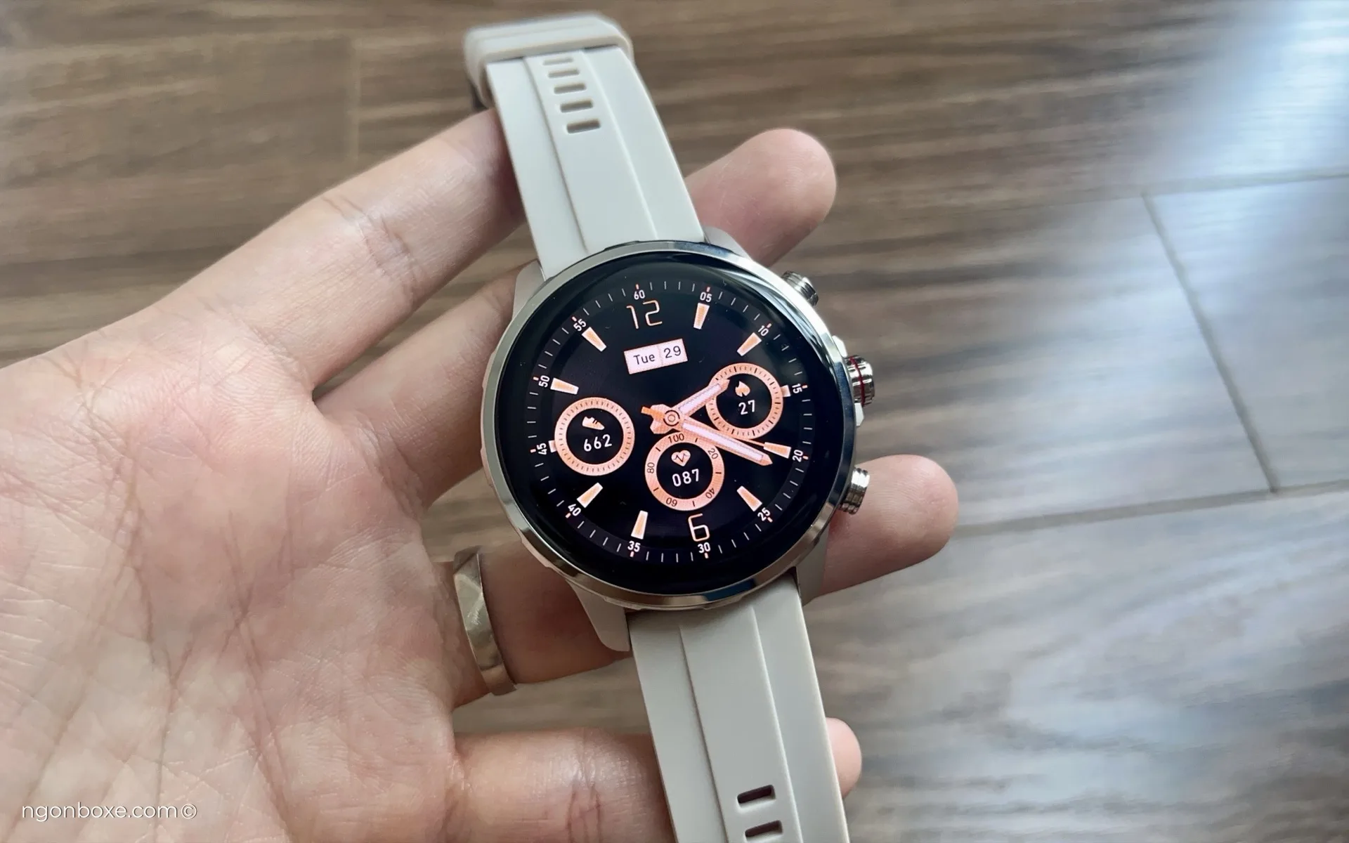 Chiếc đồng hồ này cũng có màn hình Always-On-Display (AOD) để có thể hiển thị thông tin cơ bản khi chúng ta tắt màn hình. Tuy nhiên, AOD sẽ luôn hiển thị hoặc sẽ hiển thị trong khung giờ cài đặt, không có tính năng tắt màn hình AOD nếu chúng ta không đeo đồng hồ.