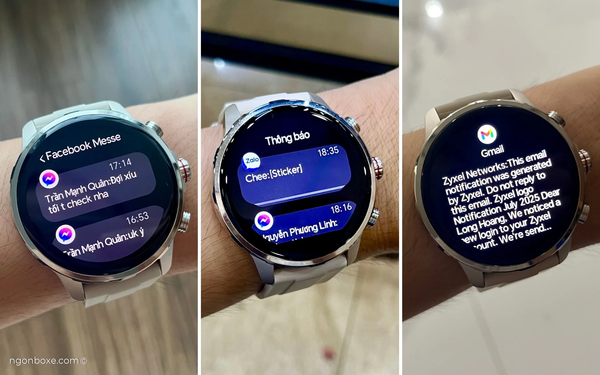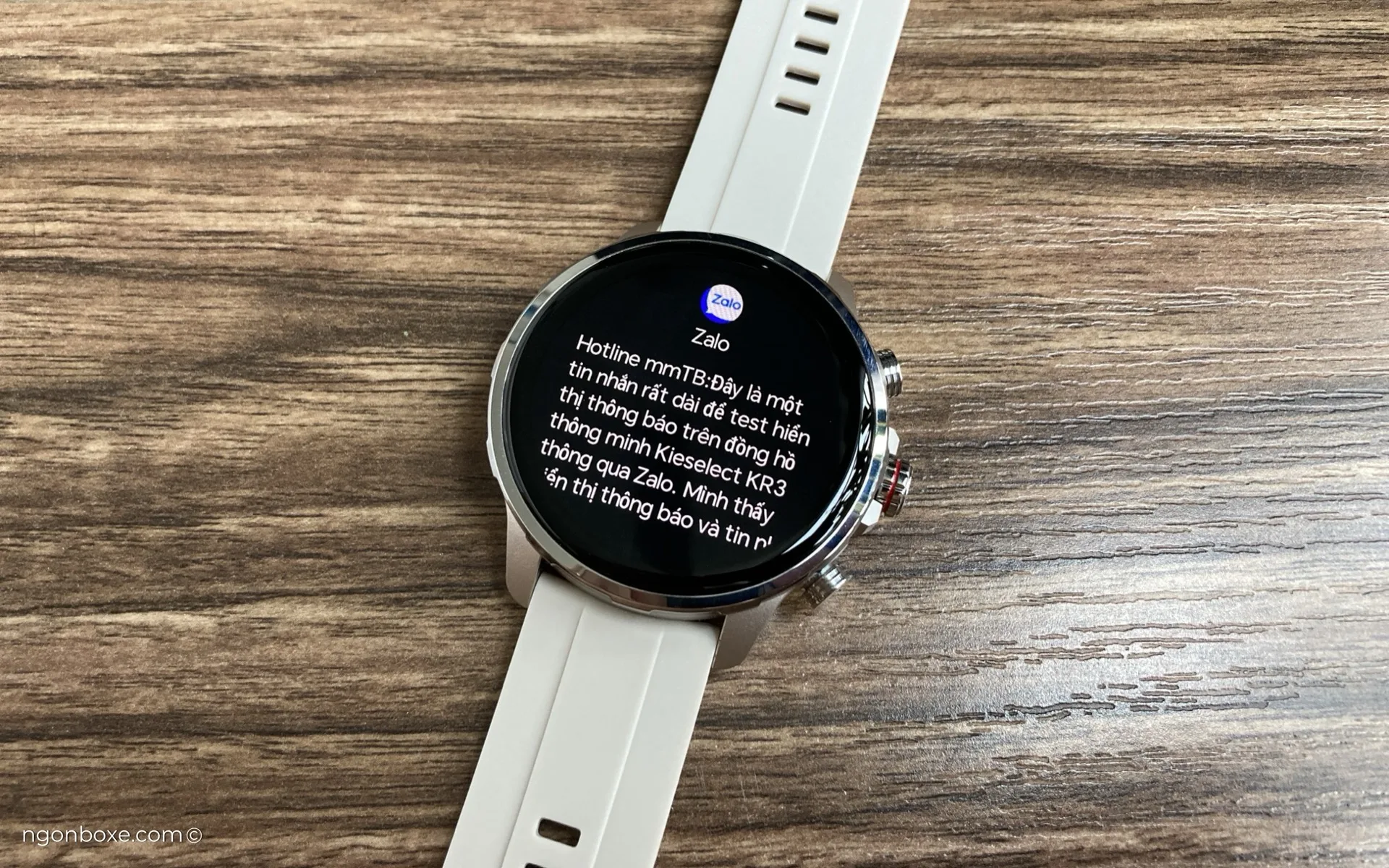 Nội dung thông báo bằng tiếng Việt trên ứng dụng Zalo được hiển thị đầy khá đầy đủ. Đây có lẽ là mẫu đồng hồ hiếm hoi trên thị trường có tùy chọn thông báo cho cả ứng dụng nhắn tin của Việt Nam.