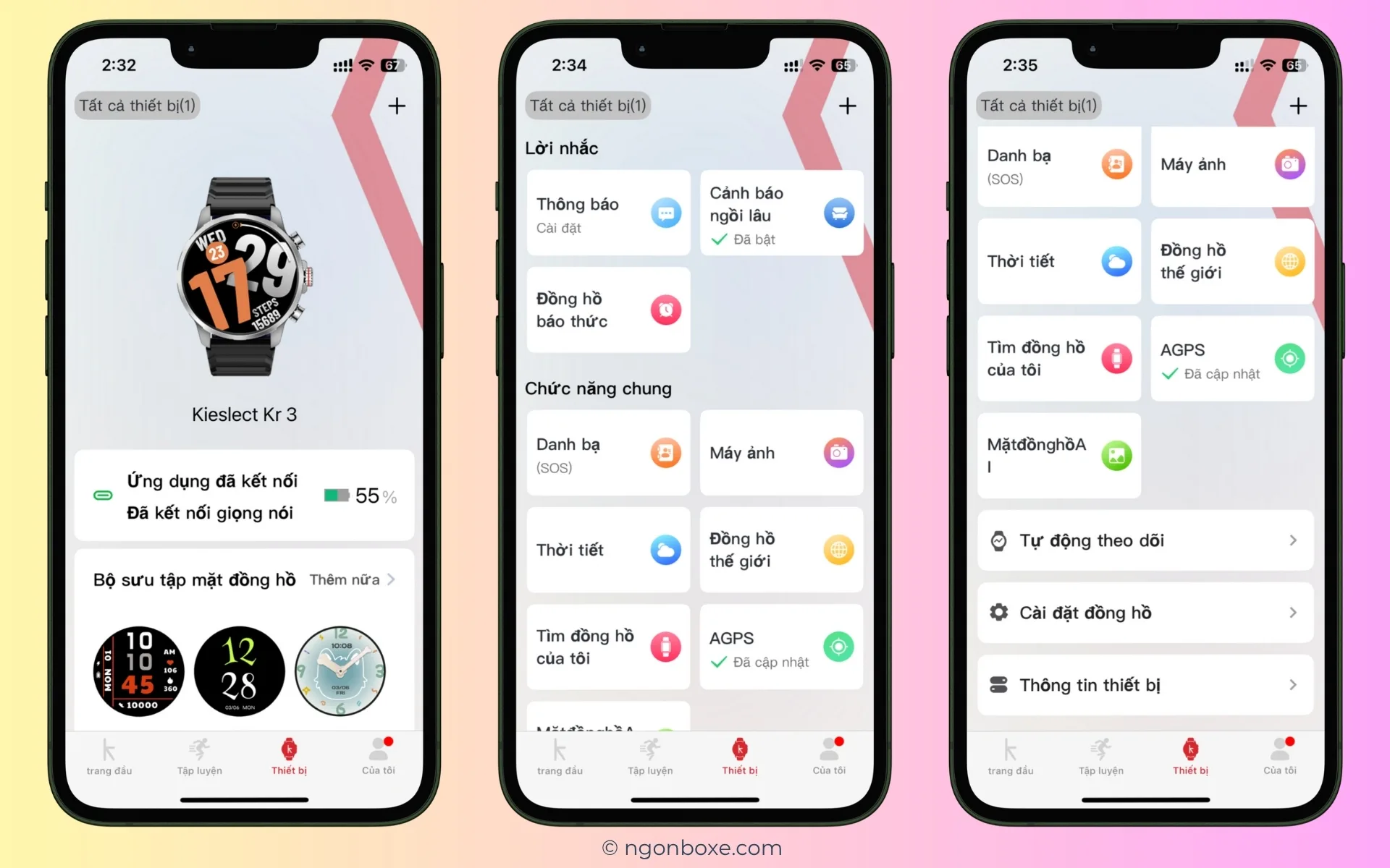 Để kết nối và sử dụng Kieslect KR3, chúng ta sẽ cần cài đặt ứng dụng Kstyle OS trên điện thoại. Ứng dụng này có hỗ trợ tiếng Việt đầy đủ. Tuy nhiên, giống với đồng hồ, font chữ trên ứng dụng khi hiển thị các kí tự tiếng Việt có dấu đều bị chưa đều chưa đẹp. Trong ứng dụng có một số chỗ Việt hóa chưa thật sự tốt.