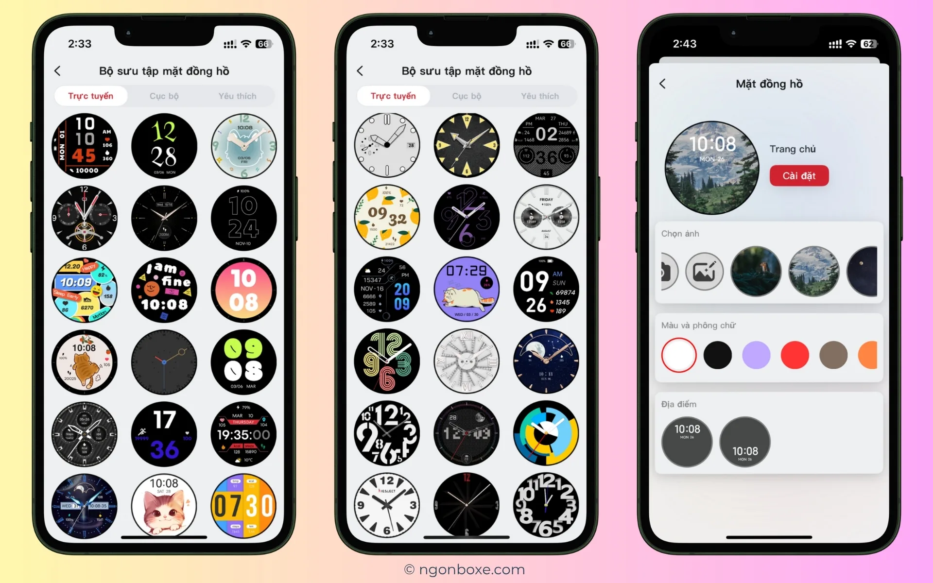 Trong ứng dụng cũng có rất nhiều mặt đồng hồ để các bạn lựa chọn với rất nhiều phong cách khác nhau. Ngoài ra, cũng có thể tùy biến mặt đồng hồ theo ý muốn, ví dụ như chọn một bức ảnh theo nhu cầu để làm hình nền cho một chiếc mặt đồng hồ cá nhân hóa.