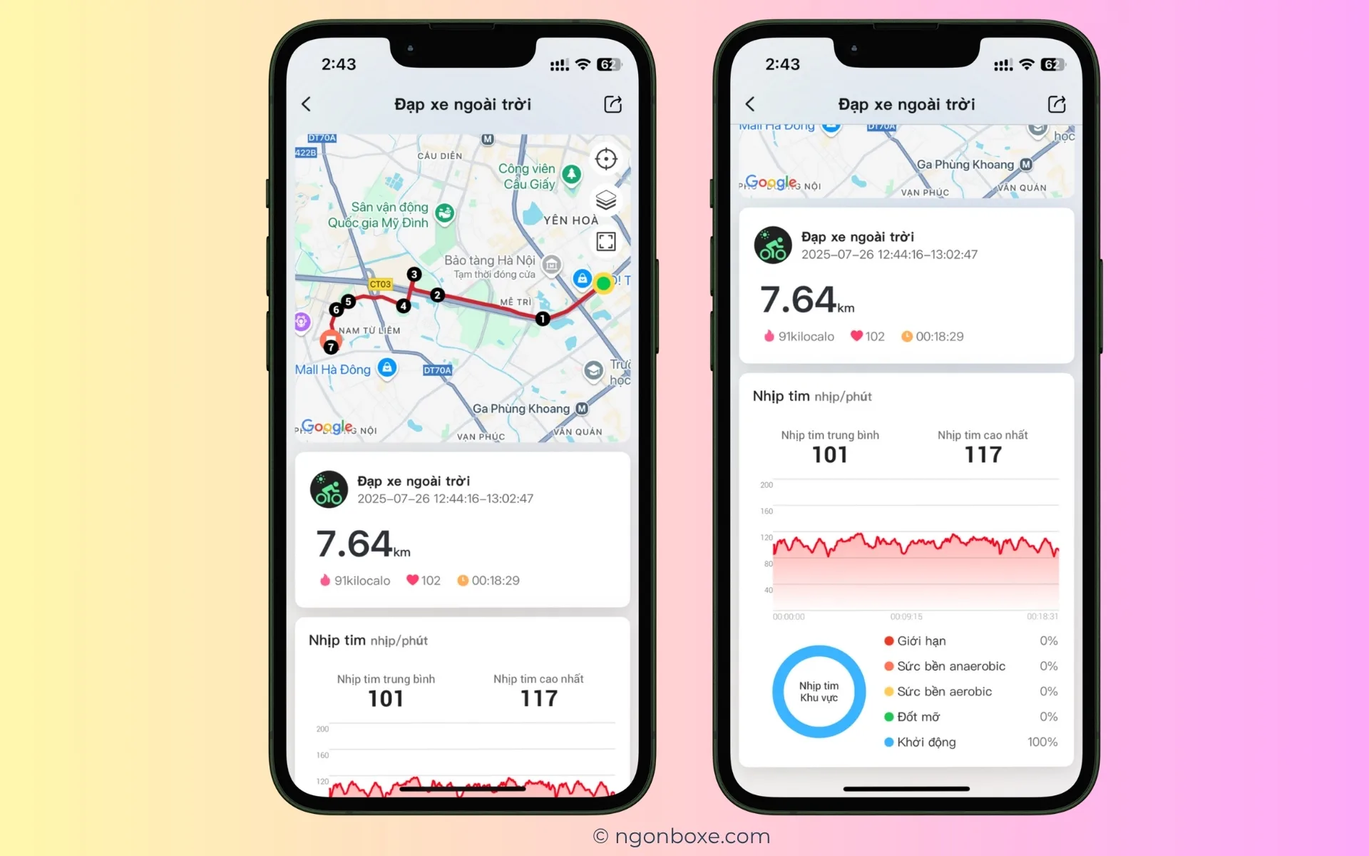 Khi đồng bộ với ứng dụng, các bạn có thể xem được các thông tin về buổi tập luyện như theo dõi quá trình, quãng đường di chuyển, cũng như các mức độ nhịp tim khi tập luyện. Mình thấy GPS của Kieslect KR3 hoạt động khá hiệu quả, ghi nhận lại hành trình tập luyện chính xác.