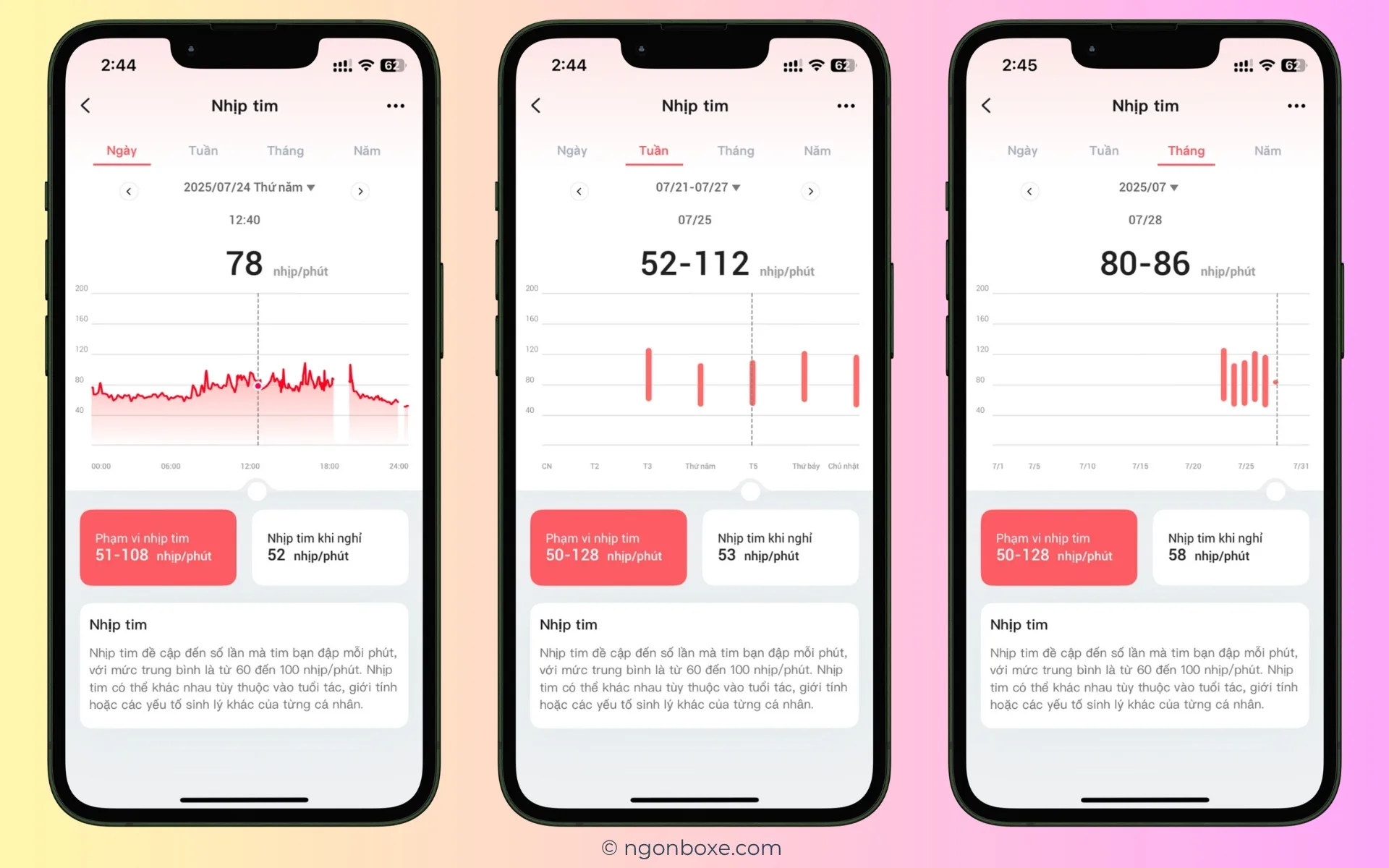- Đo nhịp tim cả ngày, tần suất 10 phút