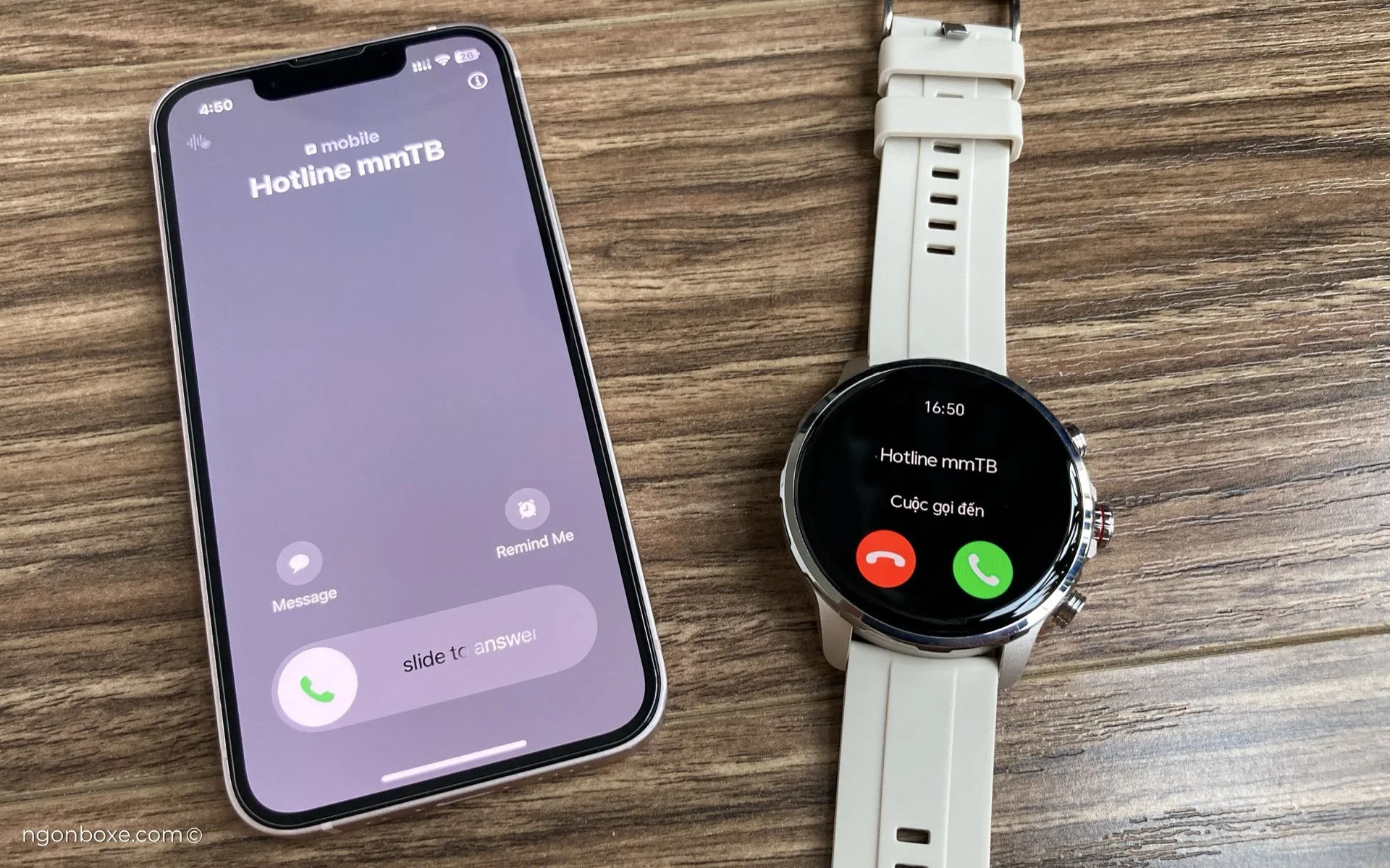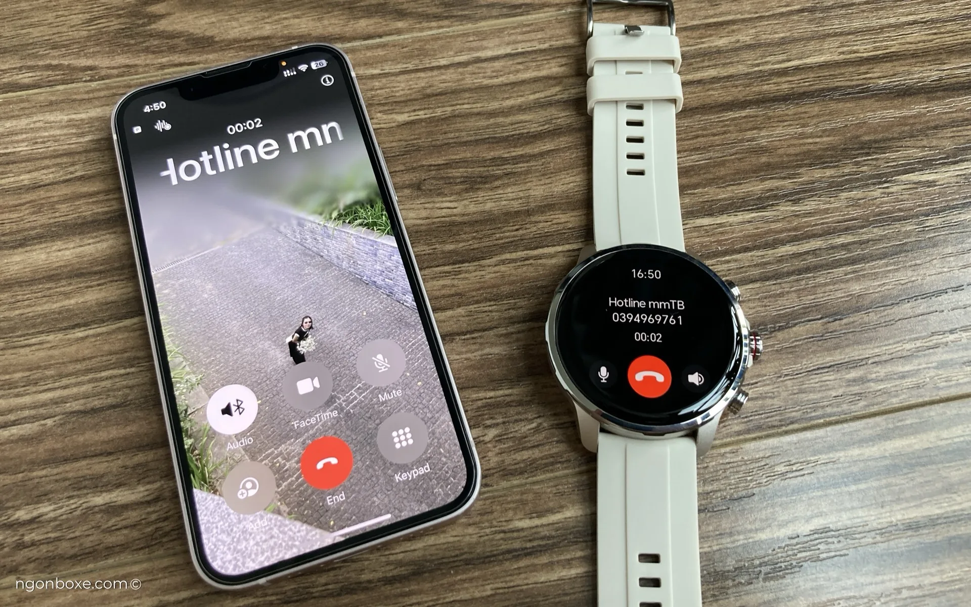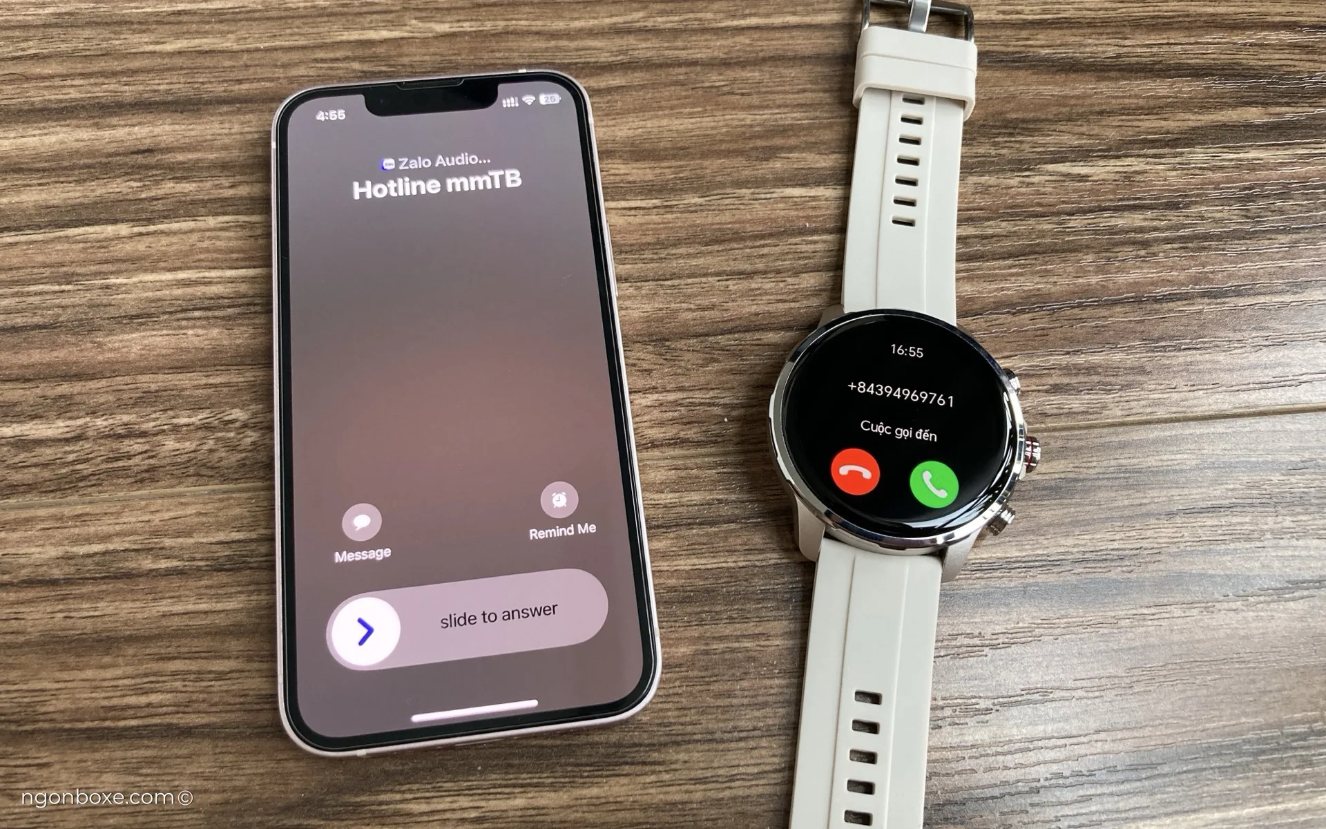 Bên cạnh cuộc gọi qua mạng di động, mình cũng có test thử cuộc gọi Zalo, đồng hồ vẫn báo và đàm thoại được bình thường. Tuy nhiên, đây sẽ là tính năng mà iOS có lợi hơn Android, vì trong hệ iOS, mọi cuộc gọi của các app đều sẽ thông qua UX chung của hệ thống.