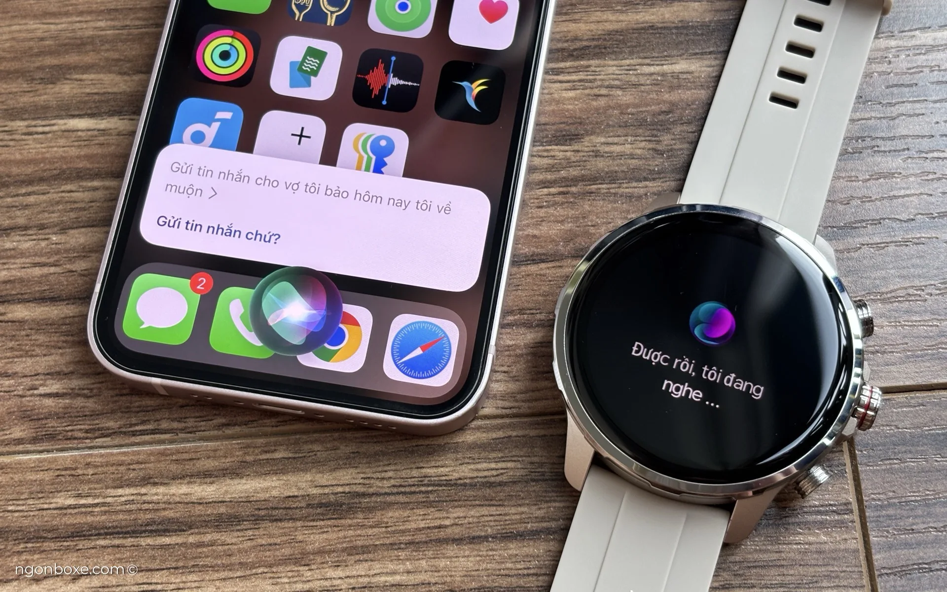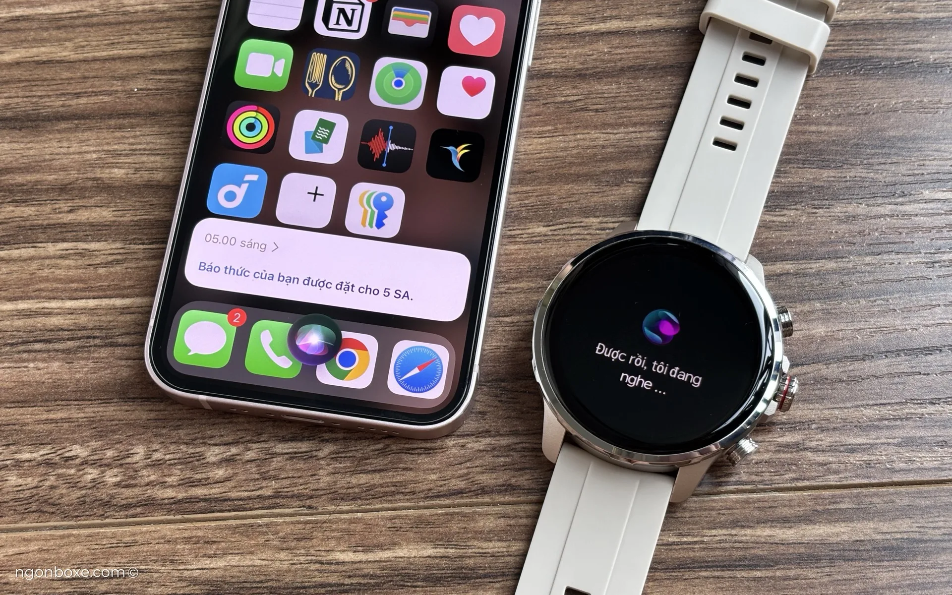 Tuy nhiên, với tính năng này, mình thấy vẫn sẽ hơi khó sử dụng, vì khi sử dụng trợ lý giọng nói trên đồng hồ để gọi Siri, microphone của đồng hồ sẽ thu được lệnh của mình, nhưng ngược lại, khi Siri phản hồi, loa trên đồng hồ lại không phát ra âm thanh phản hồi của Siri.