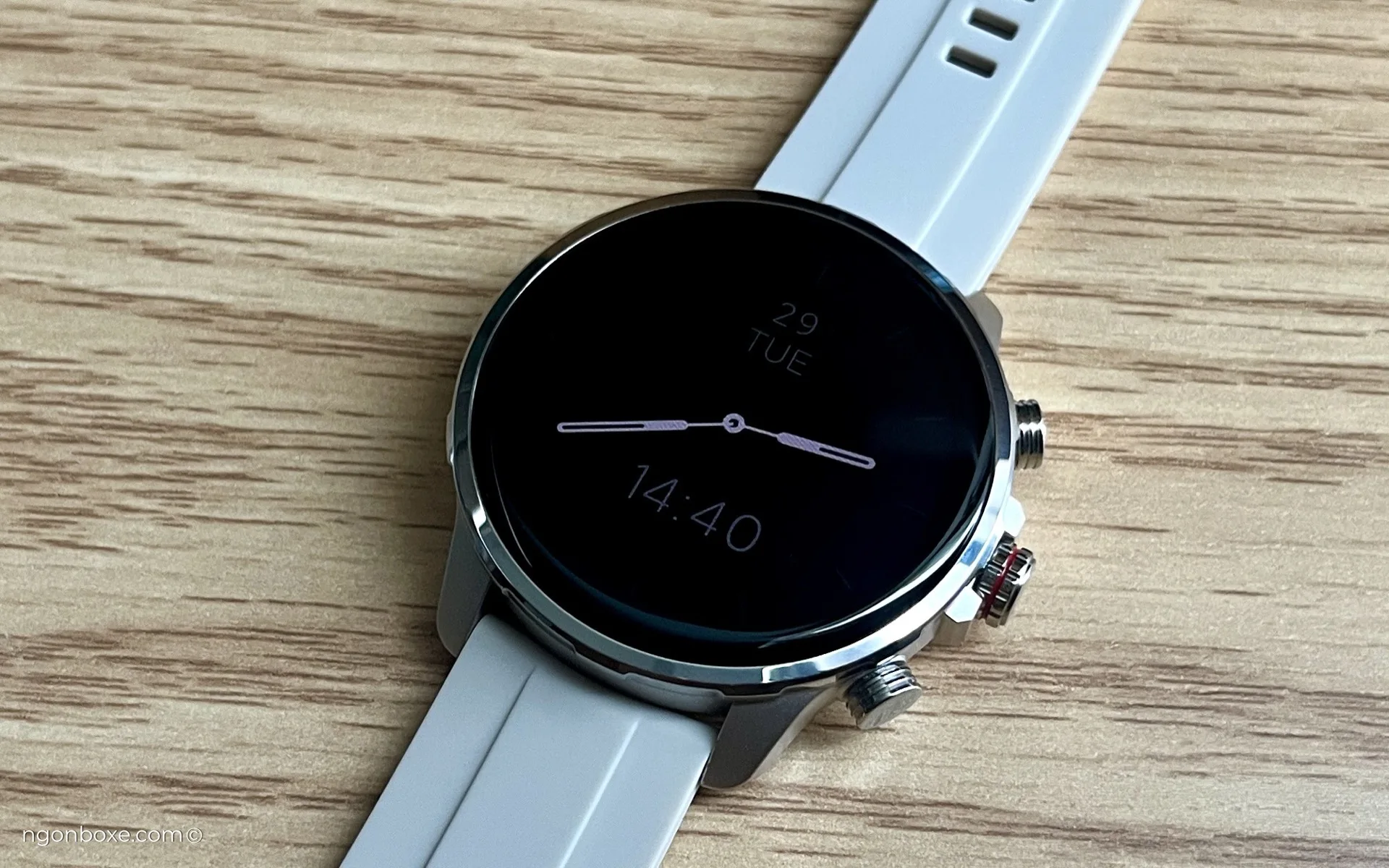 Hoặc khi ở màn hình chính, xoay núm giữa sẽ là thao tác chuyển đổi các mặt đồng hồ khác nhau. Với mình thì đây là một tính năng không cần thiết, nếu như nhà sản xuất tùy biến để có thể thay đổi độ sáng màn hình, hoặc để chuyển đổi qua các widget chức năng, mình nghĩ sẽ hữu ích hơn nhiều, vì nhu cầu xoay núm để đổi mặt đồng hồ không phải là thứ mà mình nghĩ là người dùng cần lắm.