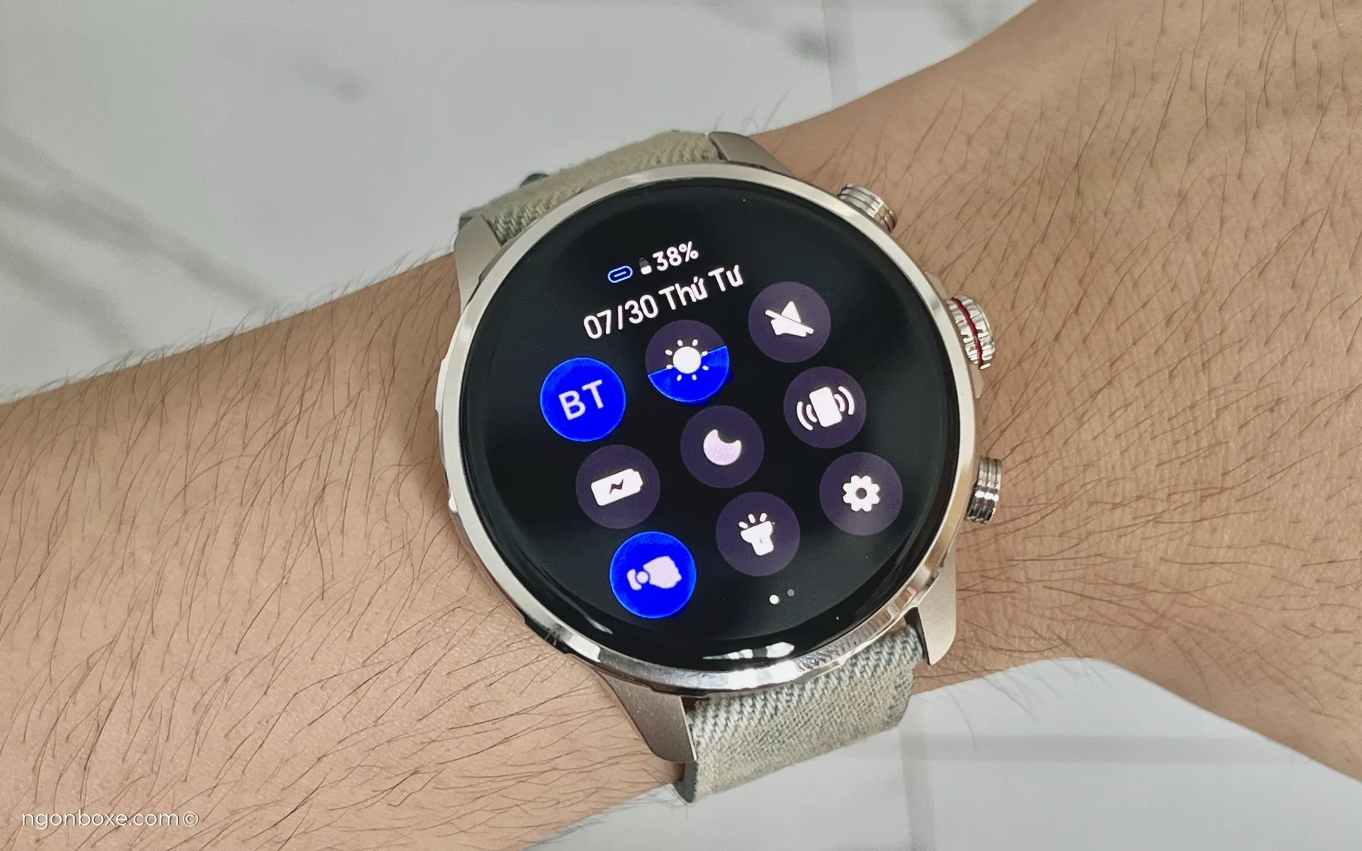 Về hiển thị, mình thấy khá tiếc một điểm là chiếc đồng hồ này không có cảm biến ánh sáng để có thể tự động điều chỉnh độ sáng màn hình, vì thế chúng ta sẽ cần điều chỉnh thủ công. Việc điều chỉnh thủ công cũng không quá phức tạp vì có shortcut để điều chỉnh độ sáng nhanh ở trong control center theo các mức 25-50-75-100%.