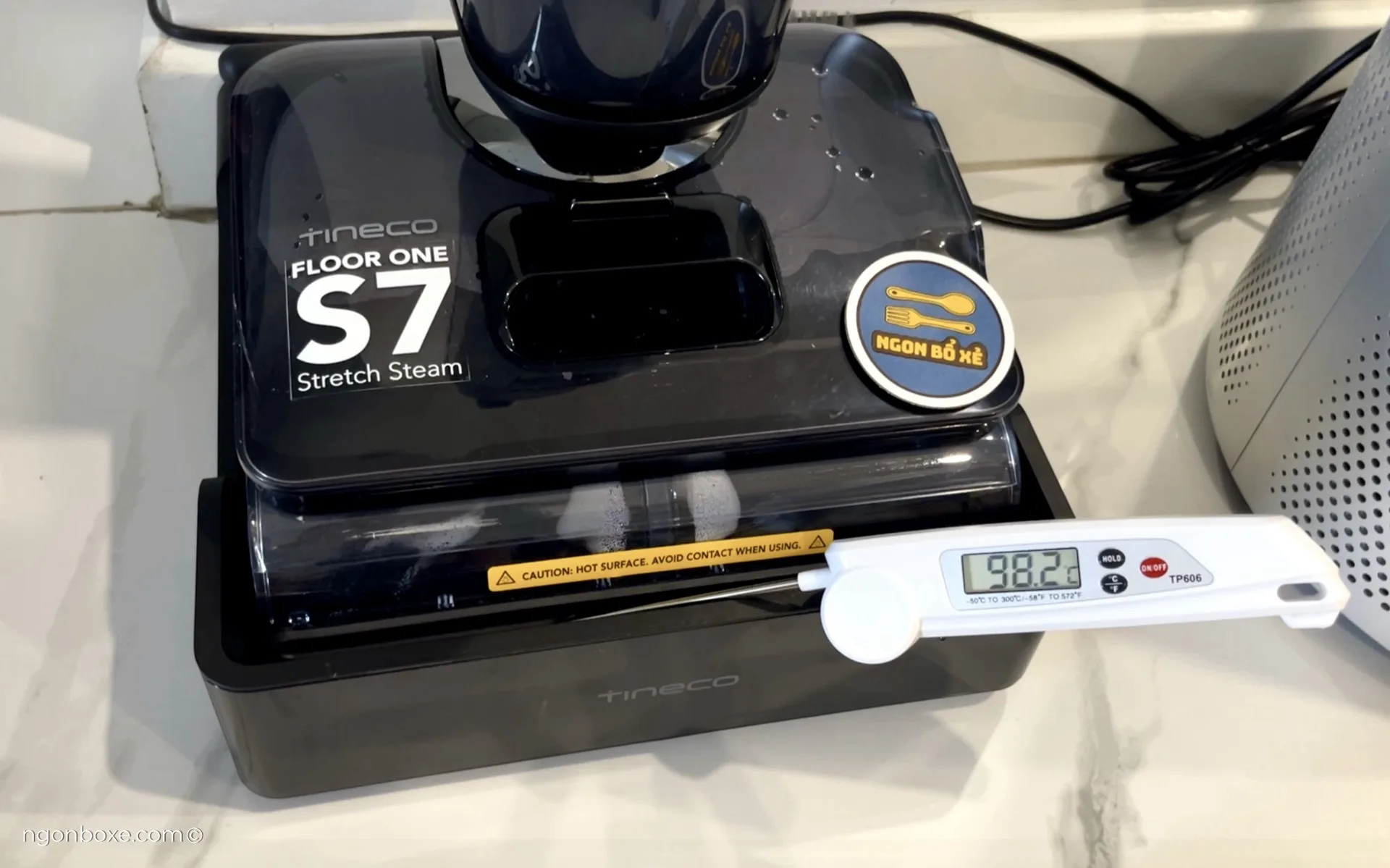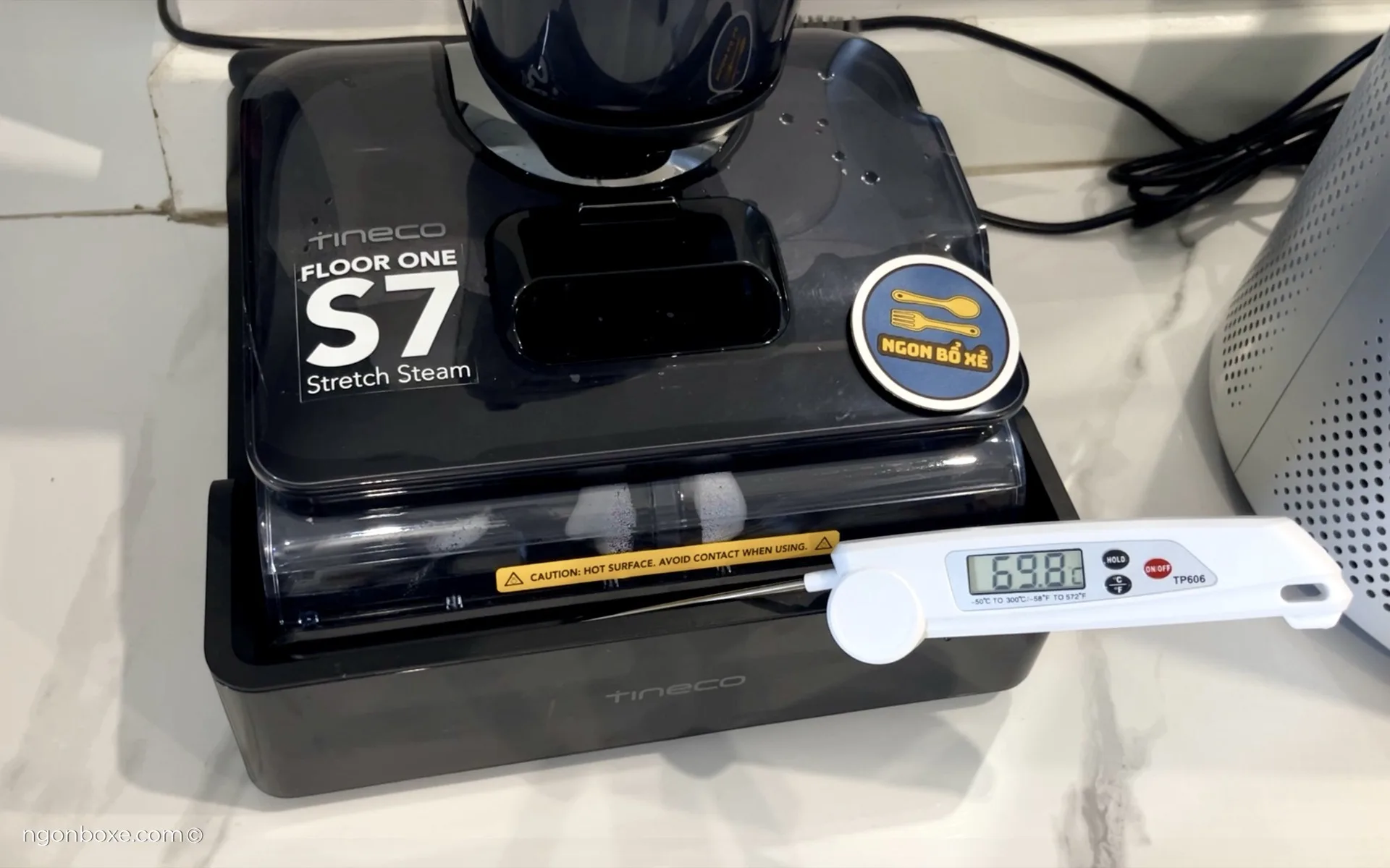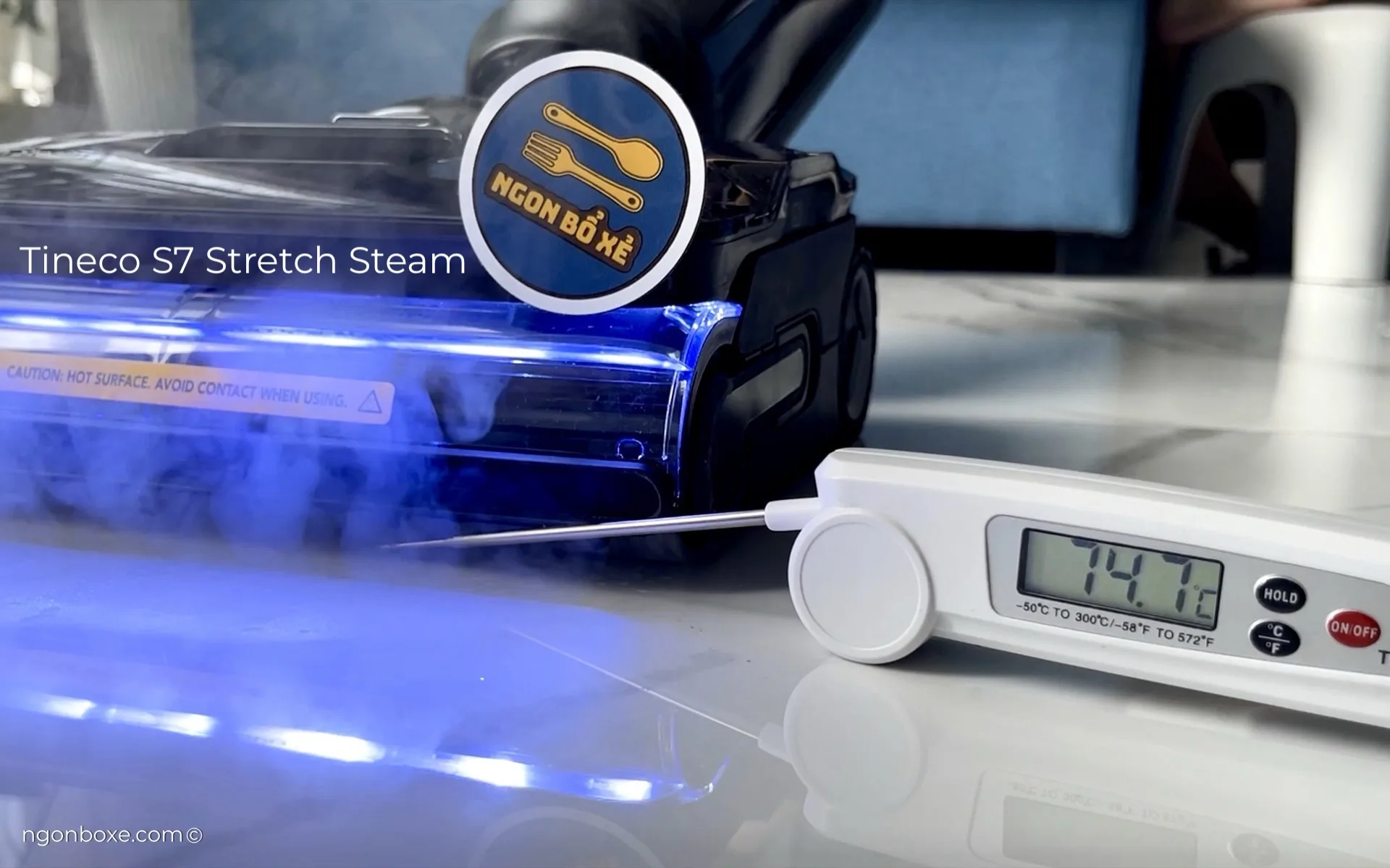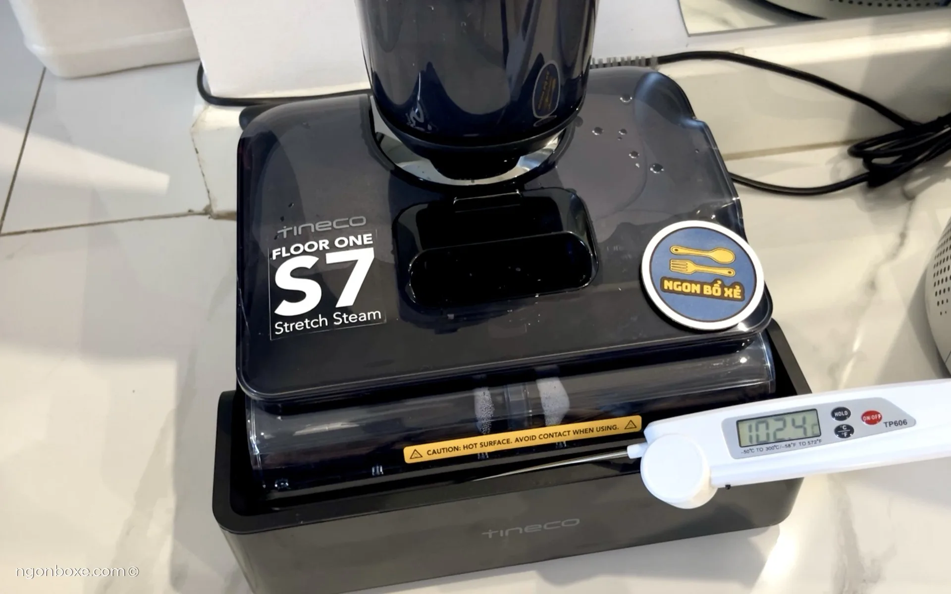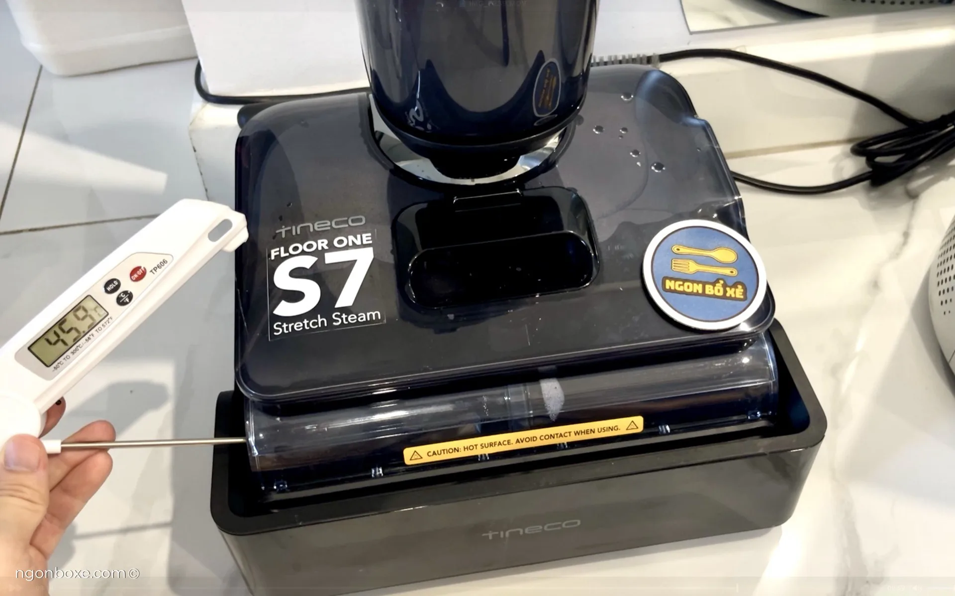 Để nói về nhiệt độ, trên Tineco S7 Stretch Steam có 2 điểm nhấn, đó là hơi nước với nhiệt độ cao và đế sạc có thể sấy con lăn khô hoàn toàn trong vài phút. Đây cũng là 2 điểm đặc biệt mà mình sẽ đo nhiệt độ kĩ hơn.