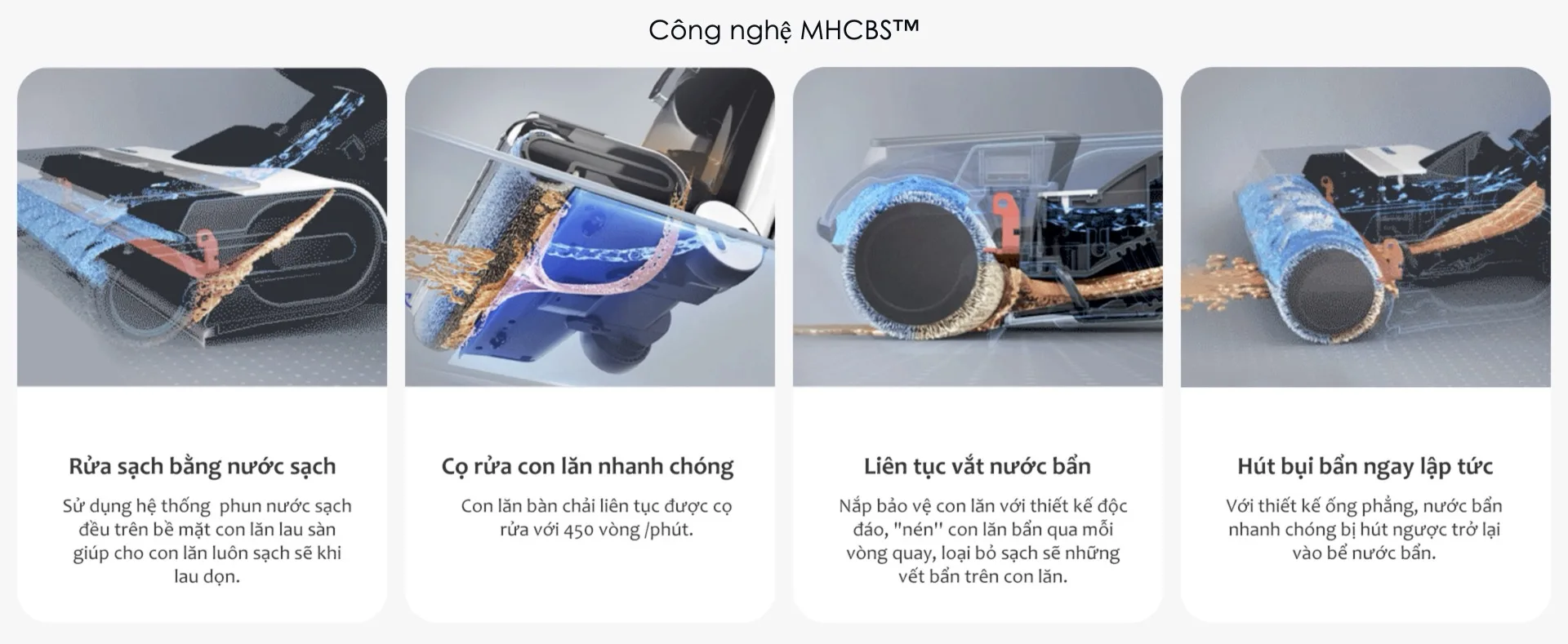 Mình đề cập lại một chút về nguyên lý làm sạch của máy lau sàn Tineco nói chung và S7 Stretch Steam nói riêng, Tineco gọi là MHCBS (Maintain Hygiene Clean Brush System – Hệ thống duy trì vệ sinh chổi lau luôn sạch sẽ):