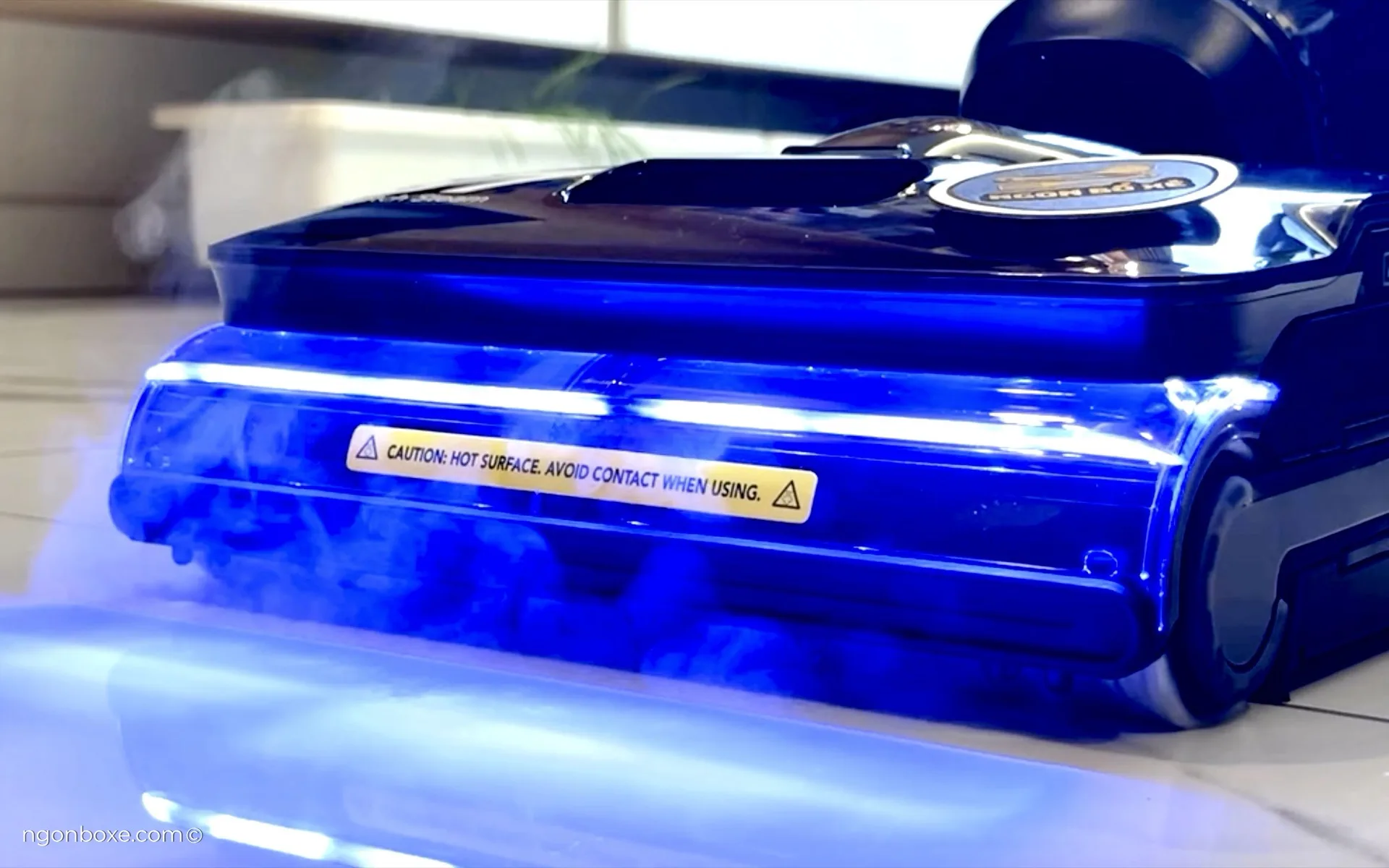 Hơi nước nóng trên 75 độ C khi tiếp xúc với sàn nhà cũng góp phần làm sạch các vết bẩn khó như dầu mỡ, đồng thời diệt khuẩn cho sàn nhà. Luồng khí nóng lên đến cả trăm độ để làm sạch và sấy giẻ lau cũng giúp máy luôn sạch sẽ cho lần sử dụng kế tiếp.