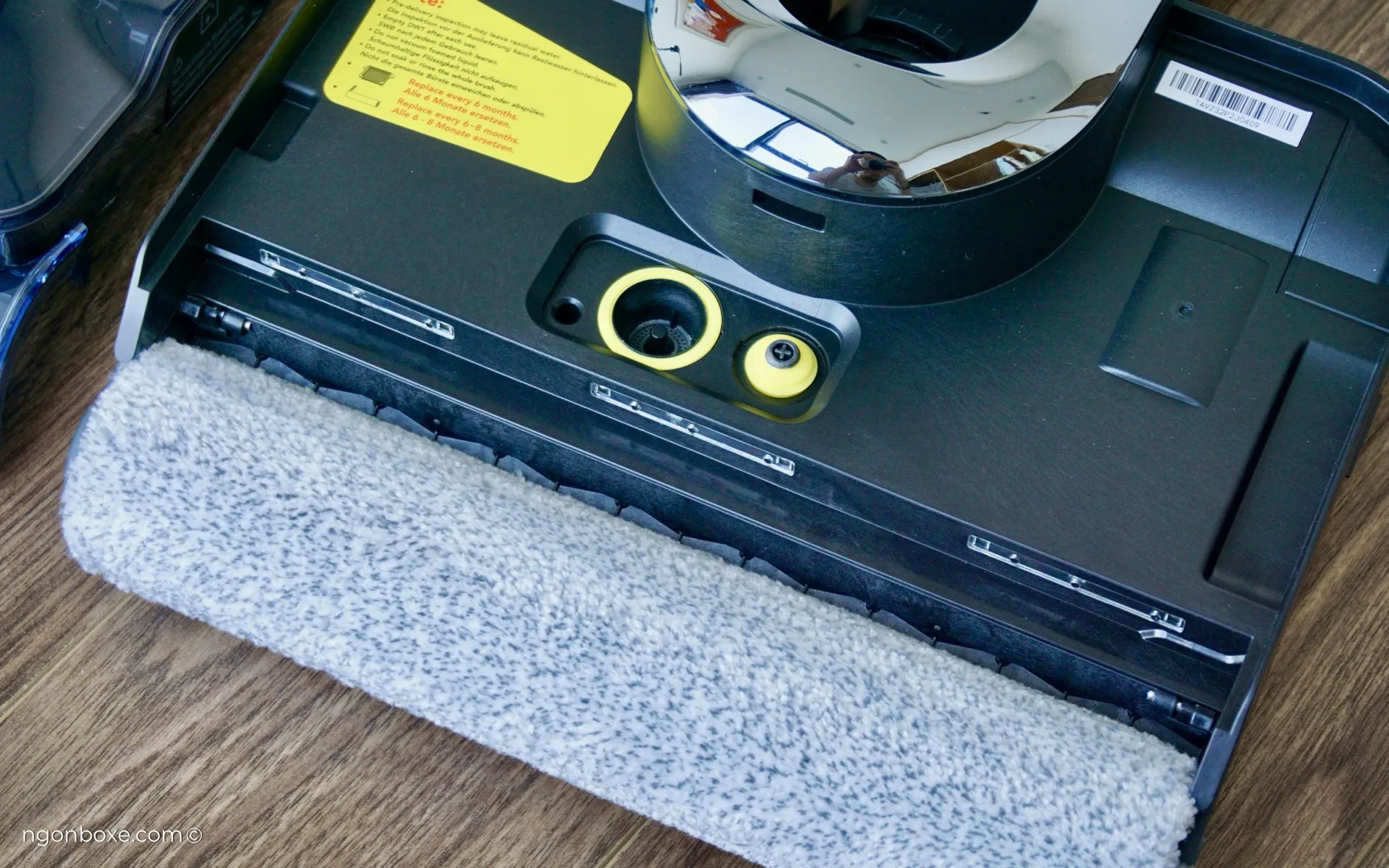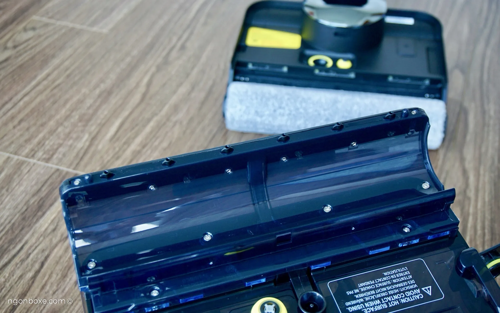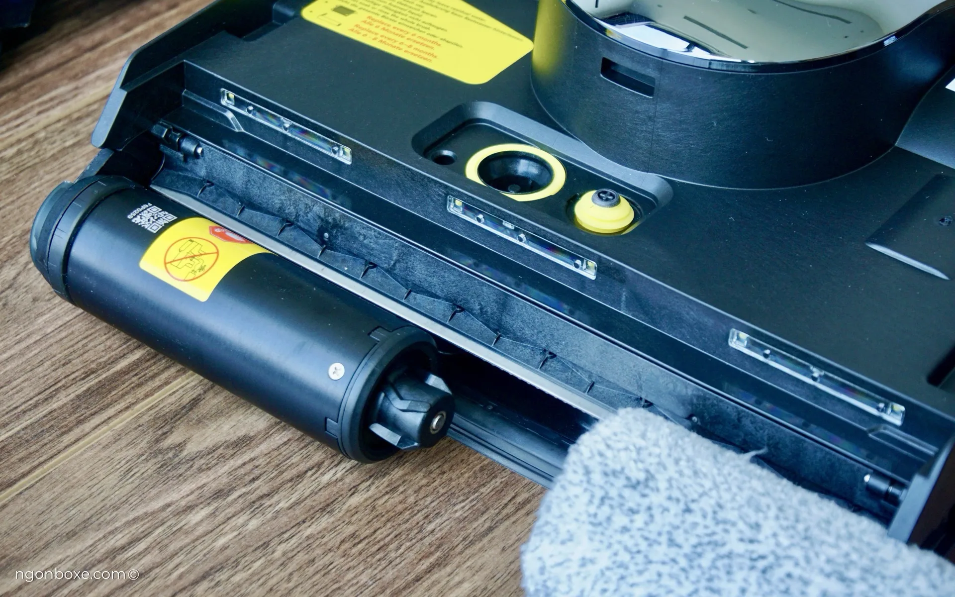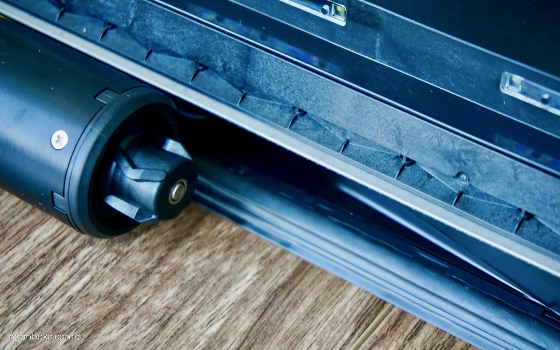 Ngoài ra, 2 bánh xe hai bên này không chỉ đơn giản là bánh xe giảm ma sát, mà còn được gắn một hệ thống động cơ trợ lực ở bên trong, giúp chúng ta dễ dàng di chuyển máy lau sàn. Phần sau mình sẽ chia sẻ kĩ hơn về tính năng này.