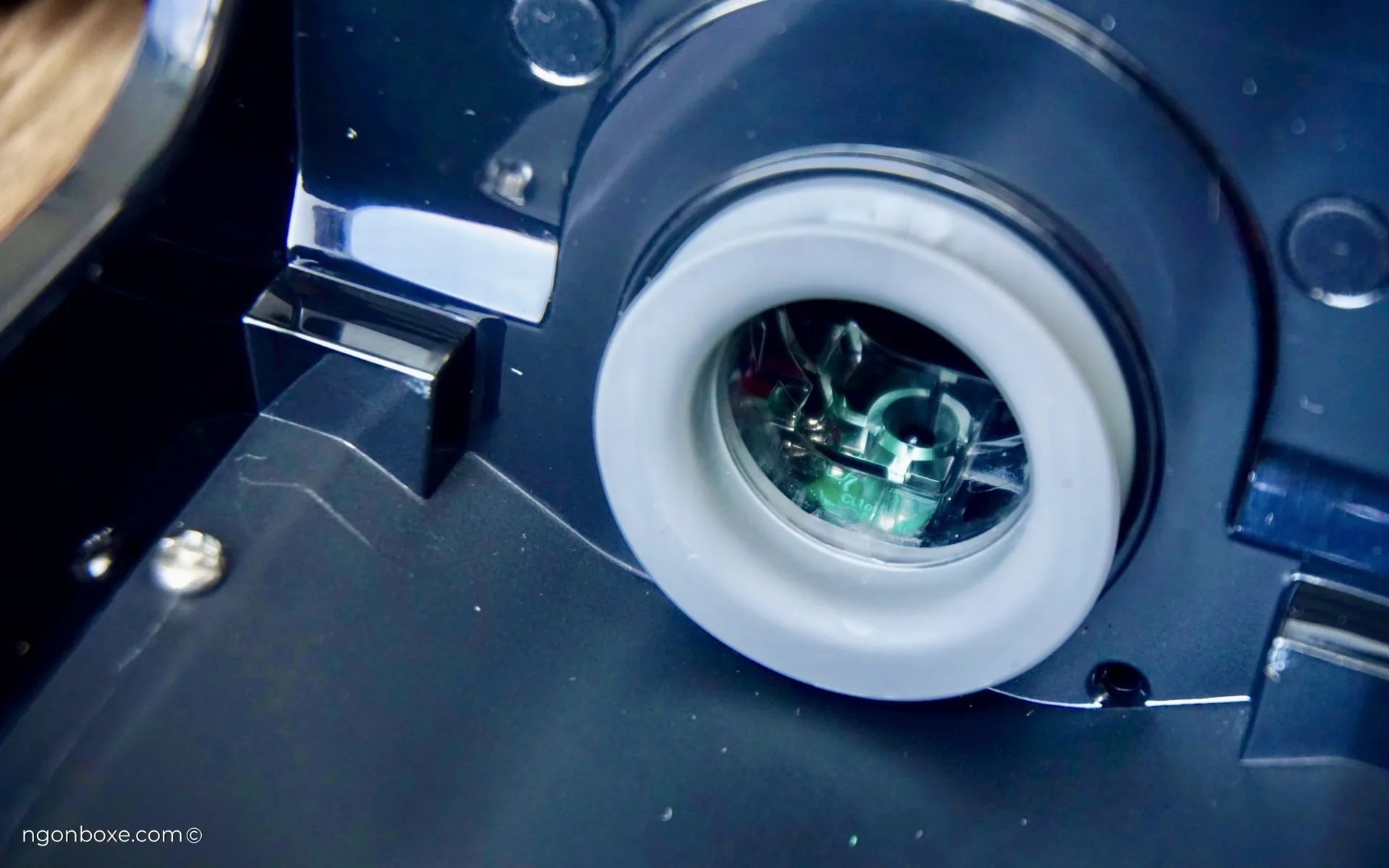 Khu vực cổ hút là cảm biến iLoop, xuất hiện trên rất nhiều đời máy Tineco. Đây là cảm biến nhận diện mức độ bẩn của nước được hút lên từ con lăn, từ đó có thể điều chỉnh mực nước, lực hút để tăng công suất nếu sàn nhà bẩn và giảm công suất khi sàn nhà đã sạch.