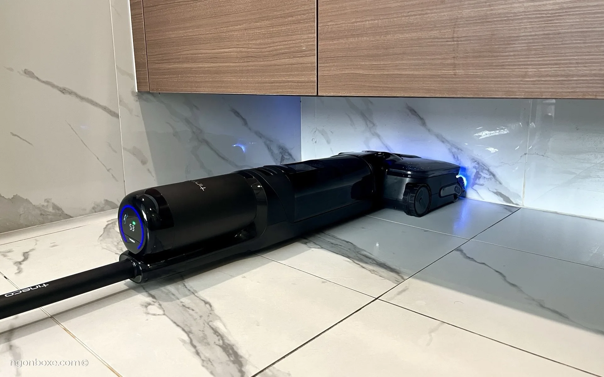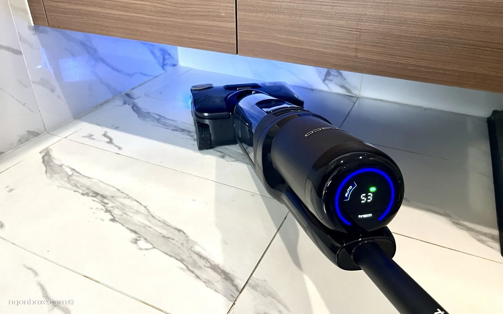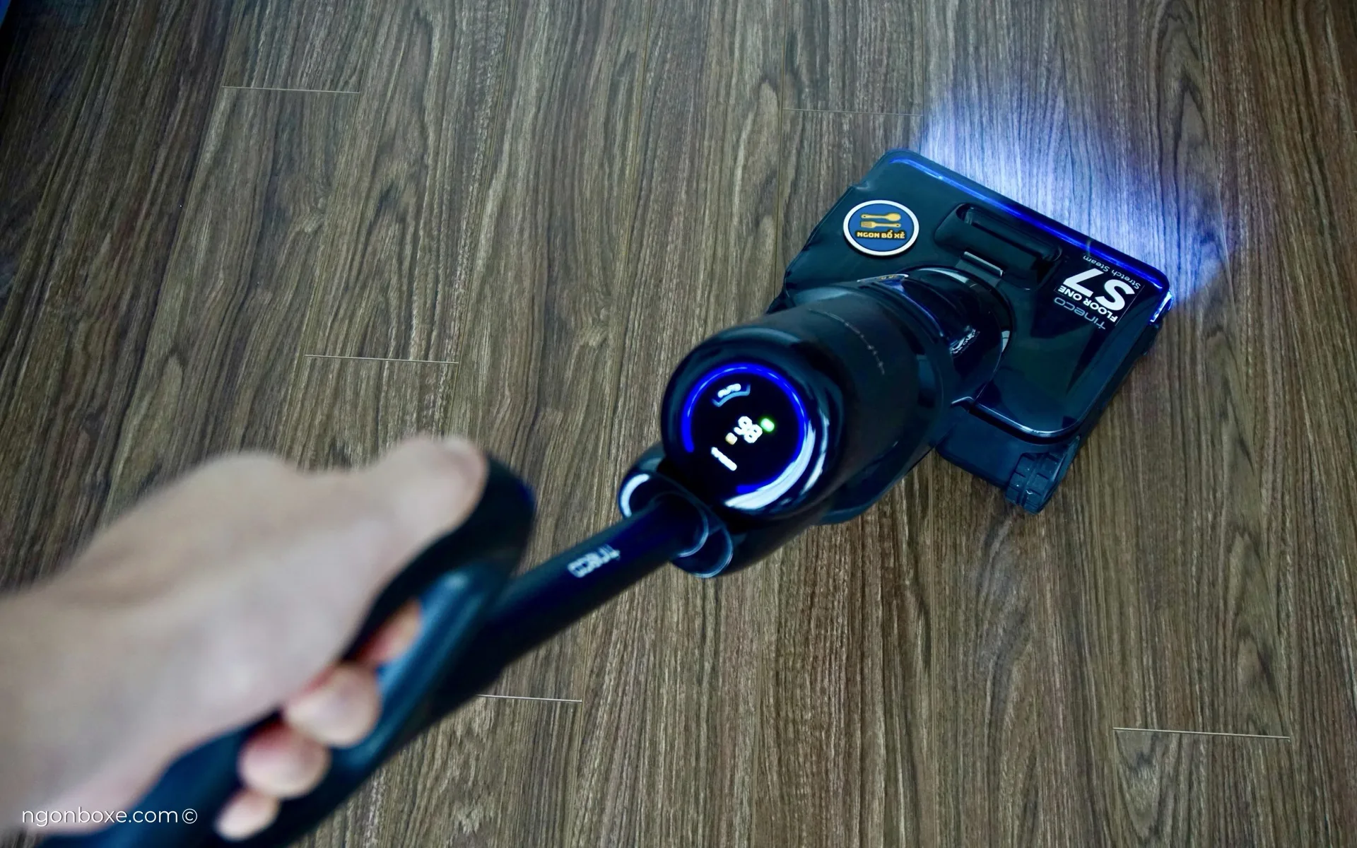 Khi hoạt động, Tineco S7 Stretch Steam cũng có hệ thống đèn chiếu sáng phía trước giúp chúng ta thấy rõ hơn các vết bẩn trên sàn nhà.