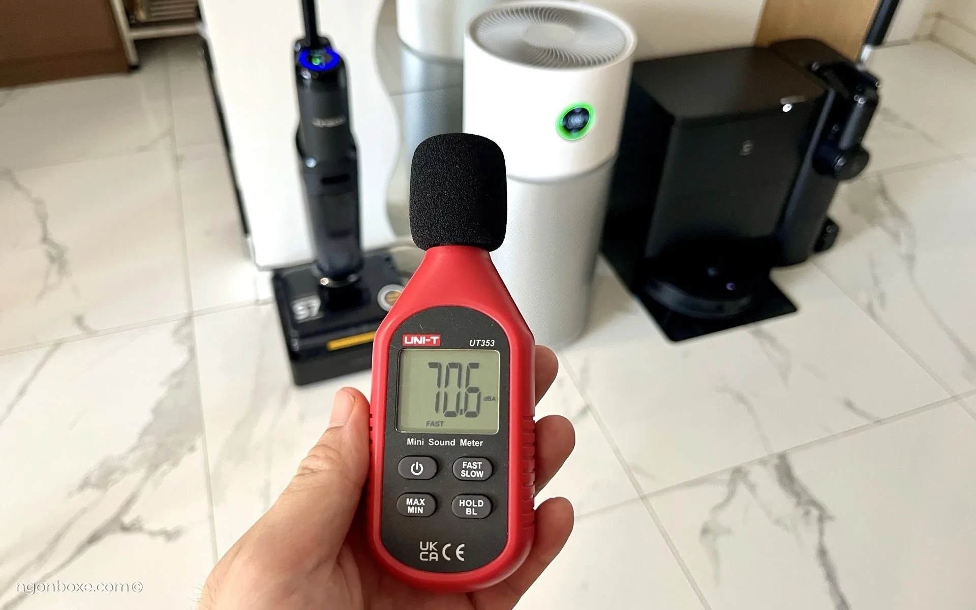 Và nhiệt độ khi sấy ở chế độ Silent cũng dao động trong ngưỡng 75-80 độ khi đo ở cửa ra khí nóng trên trạm sạc. Lúc này mình khá bất ngờ vì nhà sản xuất công bố nhiệt độ sấy Silent chỉ là 45 độ mà thôi.
